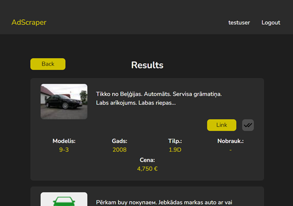 Web application developed with Laravel and Laravel-Goutte to display listings in a modern, user-friendly format, including a feature to mark listings as seen.