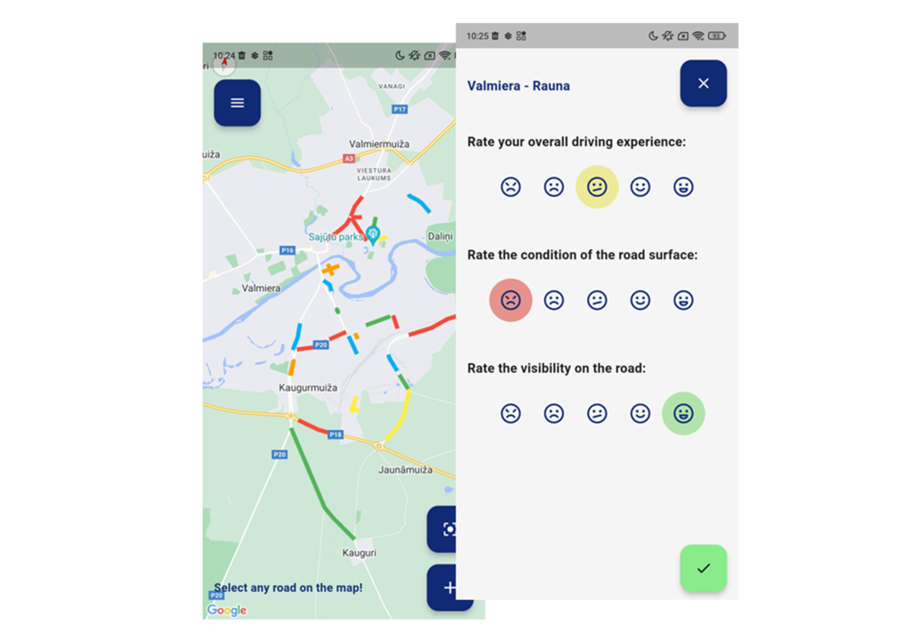 Android application developed with Flutter, featuring a road selection algorithm using Overpass API, with data storage and retrieval from Firebase.